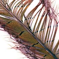 Cock Pheasant Knotted Tail - Centre tail piece with each fibre double knotted. Supplied on the quill. Perfect for Daddy Long Legs & Hoppers. Saving hundreds of hours tying legs, available in a choice of 4 different dyed colours, and a natural. Each Cock Pheasant Knotted Tail stem is approx. 14cm long (over 5 inches).