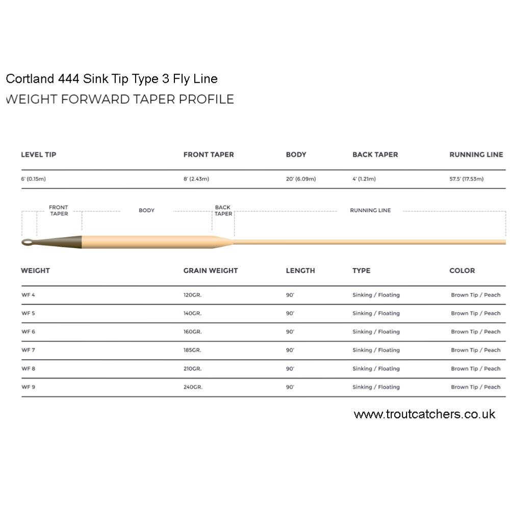 Cortland 444 Sink Tip Type 3 Fly Line features: