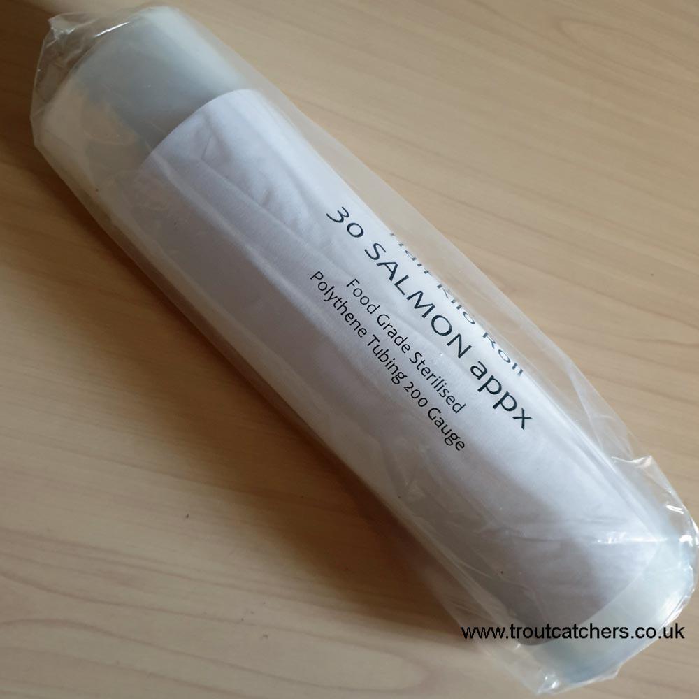 , for larger specimens, with a Polythene Tubing 200 Gauge and a 10" width, is perfect for around 30 salmon.