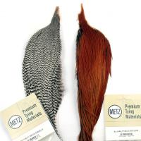Metz Cock Necks - Grade 1 these necks contain plenty of long thin feathers sizes #8 to #22. Stiff barbs, web free, flexible stems, developed by Metz by which all other hackles are compared. Deep, natural consistent colours are the Metz trademark. You will find your flies will float higher and longer when using Metz necks, long before artificial floatants became the norm, Metz hackles were floating dries through the fastest of riffles.