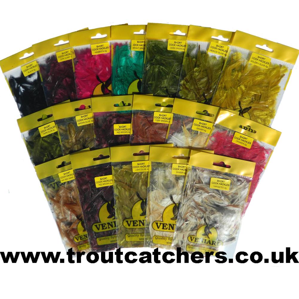Excellent service from Troutcatchers. The Veniard''s hackles left something to be desired. The black and crimson hackles I ordered were fine although most of them were rather on the large side to be of any practical use, ie, tying dries up to size 12s. The Golden Olive hackles had brown tips and were of no use.