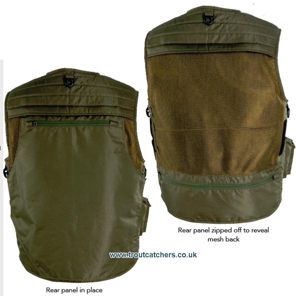 Snowbee All-Seasons Fly Fishing Vest manufactured from a tough, rip-proof polyester material, with a PU lining, making it waterproof, but also quick-drying, should it get soaked! The All-Seasons Fly Fishing Vest offers good wind resistance, making it ideal for autumn, winter & spring use, and with the clever feature of a zip-off back panel revealing a mesh back, perfect for the summer months to keep you cool.