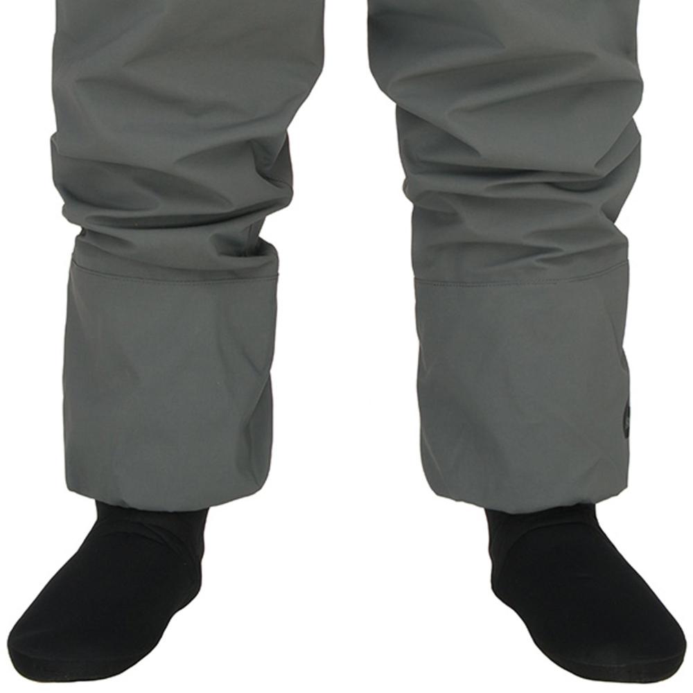 • Stockingfoot Design with Neoprene Socks: The 4mm 3-panel Black Neoprene socks provide extra warmth, comfort, making them ideal for long days in the water. The socks also feature elasticated gravel guards with lacing clips, helping keep debris out and your feet dry.