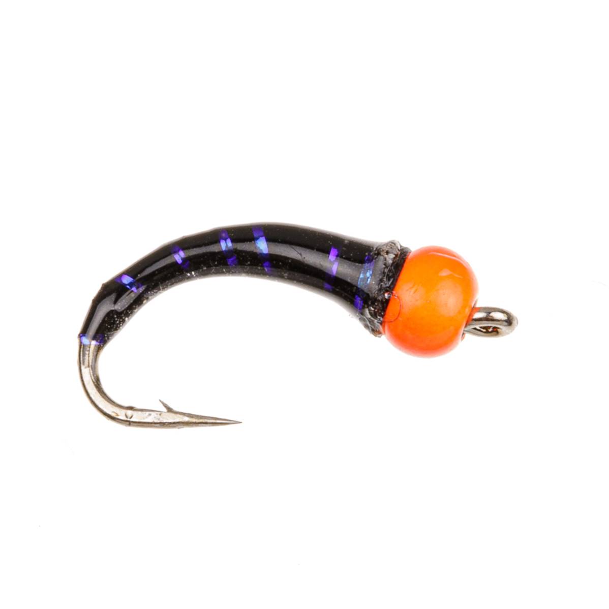 The Black UV Orange Hot Head Buzzer is a standout in the world of Nordic trout flies, renowned for its effectiveness in enticing trout. This fly features a sleek black body, enhanced with UV reflective materials that mimic the natural sheen of emerging insects. The vibrant orange hot head adds an irresistible trigger point, making it highly visible in various water conditions. Originating from the innovative fly-tying traditions of Northern Europe, this buzzer is designed to imitate midge pupae, a staple in trout diets. Its proven track record in both still and running waters makes it a must-have for any angler's fly box..