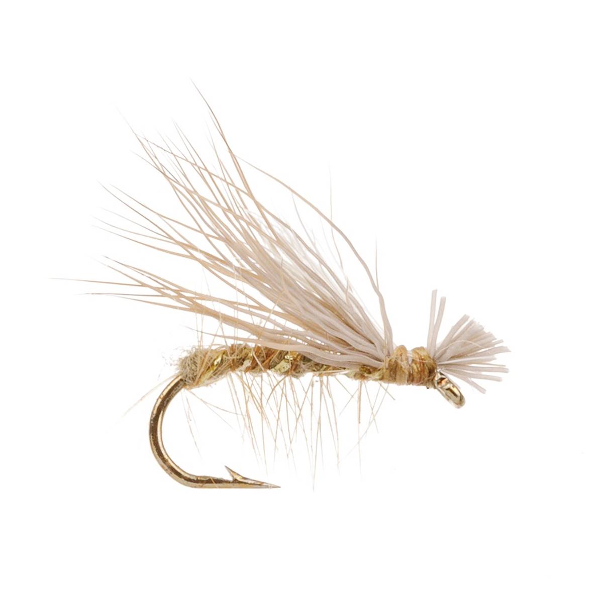 The Elk Hair Hi-Viz Tan Caddis fly is designed to mimic the adult stage of the caddisfly, a crucial part of a trout's diet. As caddisflies emerge from their pupal stage, they rest on the water's surface to dry their wings before taking flight. This fly imitates that vulnerable moment, with its buoyant elk hair ensuring it sits perfectly on the water.