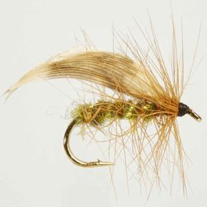 The Green Peter Caddis, a classic trout fly, is renowned for its effectiveness in luring trout, especially in the UK and Ireland. Originating in the 19th century, this fly mimics the caddisfly, a staple in trout diets. Its design features a bushy hackle, green body, and brown wings, creating a lifelike appearance that triggers aggressive strikes from trout. The fly's buoyancy allows it to float enticingly on the water's surface, making it ideal for both still and moving waters. Anglers appreciate its versatility and reliability, often considering it a must-have in their fly box for successful fishing trips..