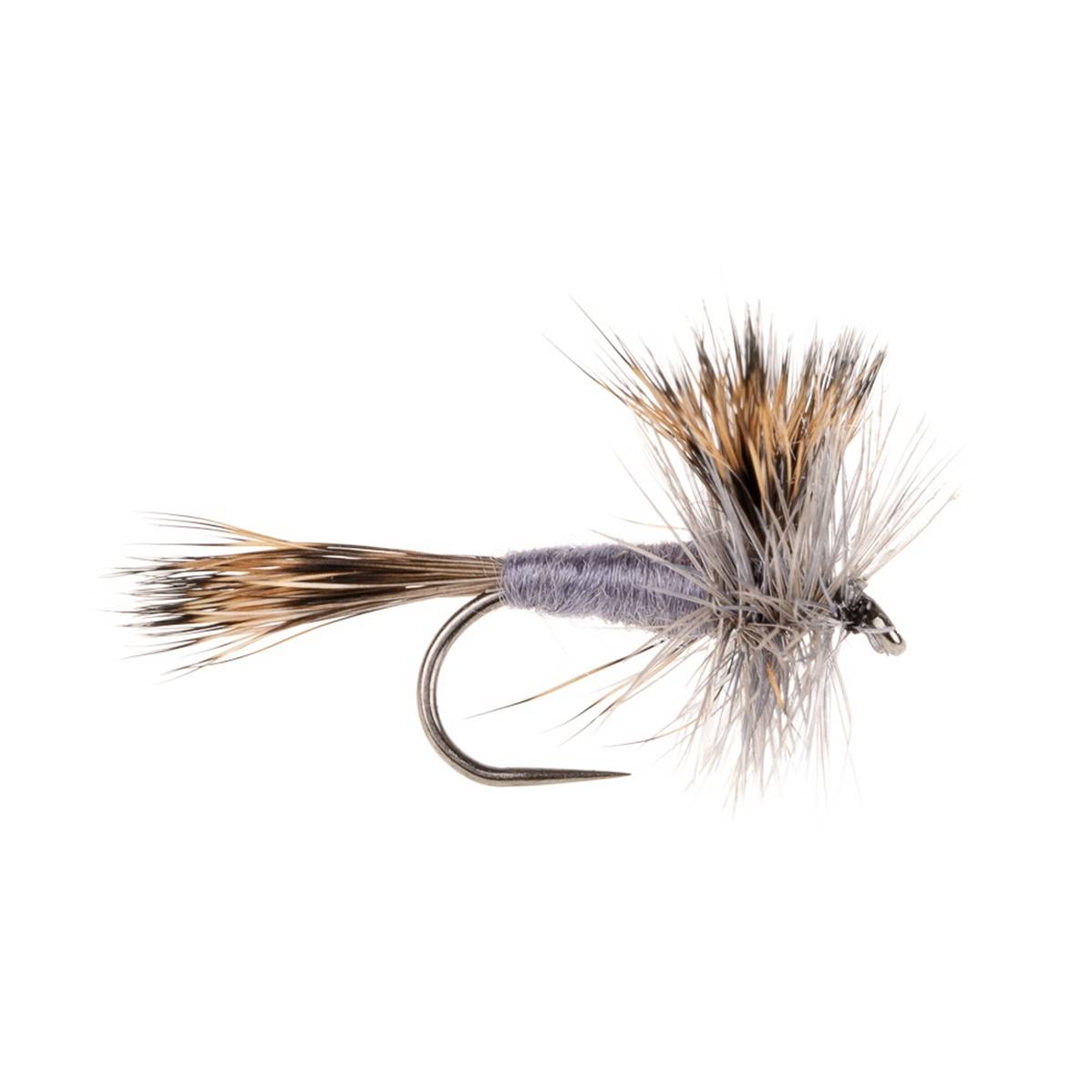 The Grey Wulff Dry Barbless Trout Fishing Fly is designed to mimic the adult stage of mayflies, particularly during their emergence. As mayflies transition from nymphs to adults, they become highly vulnerable, making them an attractive target for trout. This fly imitates the mayfly's delicate wings and buoyant body, floating on the water's surface, which is a critical moment when fish are actively feeding. Trout are drawn to this stage because the emerging mayflies are plentiful and easy to catch, providing a rich source of nutrition. The Grey Wulff's realistic appearance and movement make it an effective choice for anglers.