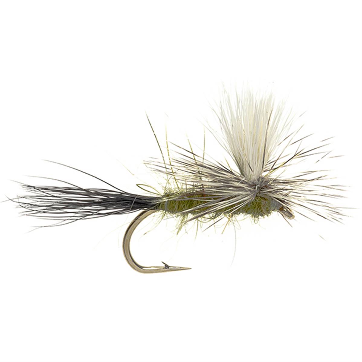 Key features include a bushy parachute hackle for stability, a hare's ear body for natural texture, and a slender profile that ensures a realistic presentation. Its design allows for a delicate landing, enticing even the most cautious fish. Perfect for both still and moving waters, the Hares Ear Olive Parachute is a must-have in any fly box, offering reliability and proven success in diverse fishing conditions..