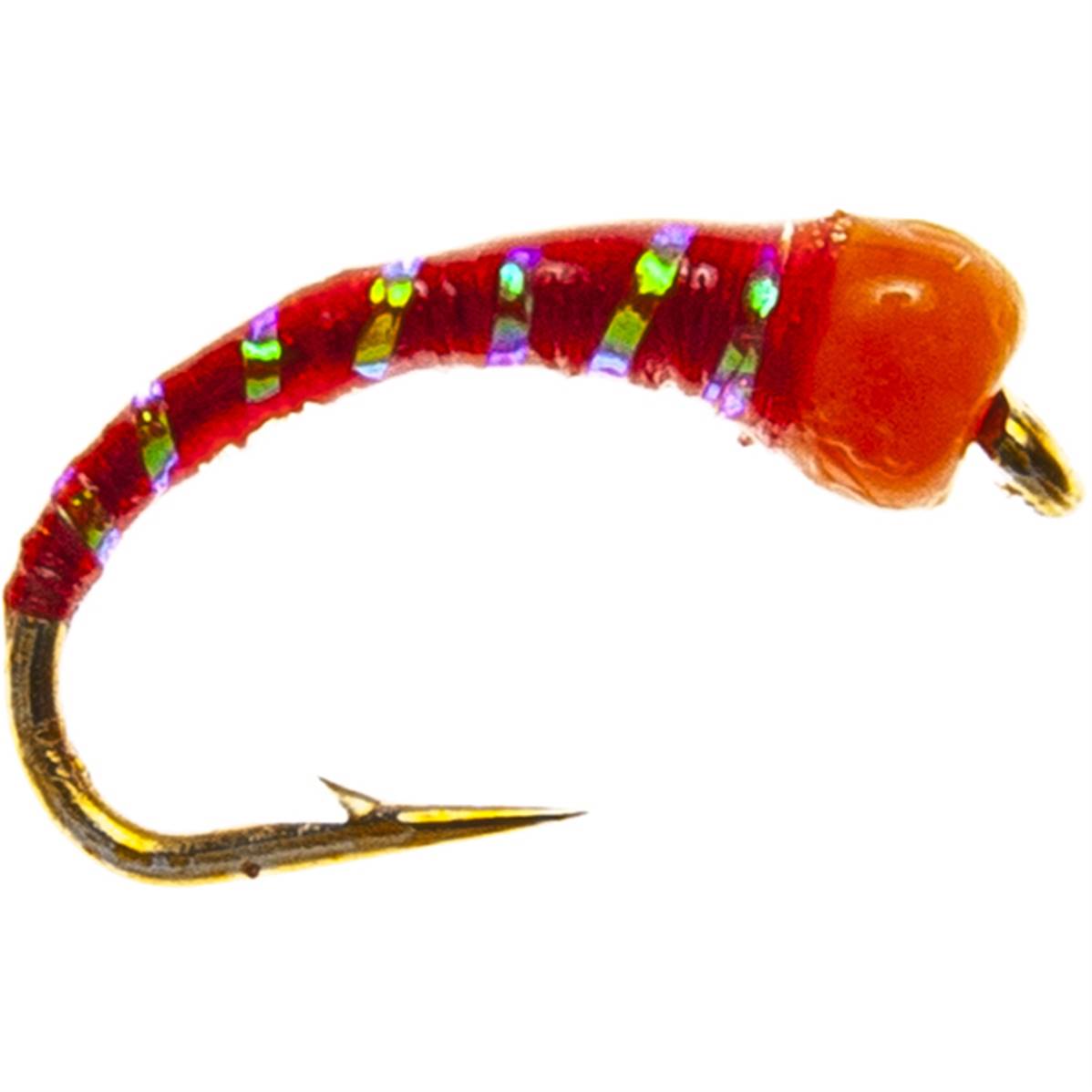 The Hot Head Orange & Pearl Rib Buzzer fly imitates the pupal stage of a midge, a crucial part of a trout's diet. Midges, or chironomids, are small insects that undergo a transformation from larva to pupa before emerging as adults. During the pupal stage, they ascend from the lake or riverbed to the surface, making them vulnerable to predation. The fly's vibrant orange head and pearl ribbing mimic the natural sheen and movement of the emerging pupa, attracting trout. Fish target these pupae due to their abundance and ease of capture, providing a rich source of nutrition.