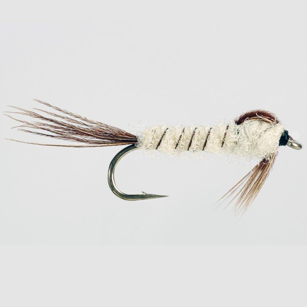 The Richard Walker Mayfly XL Wtd Nymph is designed to mimic the nymph stage of the mayfly, a crucial part of a trout's diet. This fly imitates the mayfly nymph as it prepares to emerge, a time when it becomes highly vulnerable and an easy target for fish. The weighted design ensures it sinks to the appropriate depth, where these nymphs are typically found.