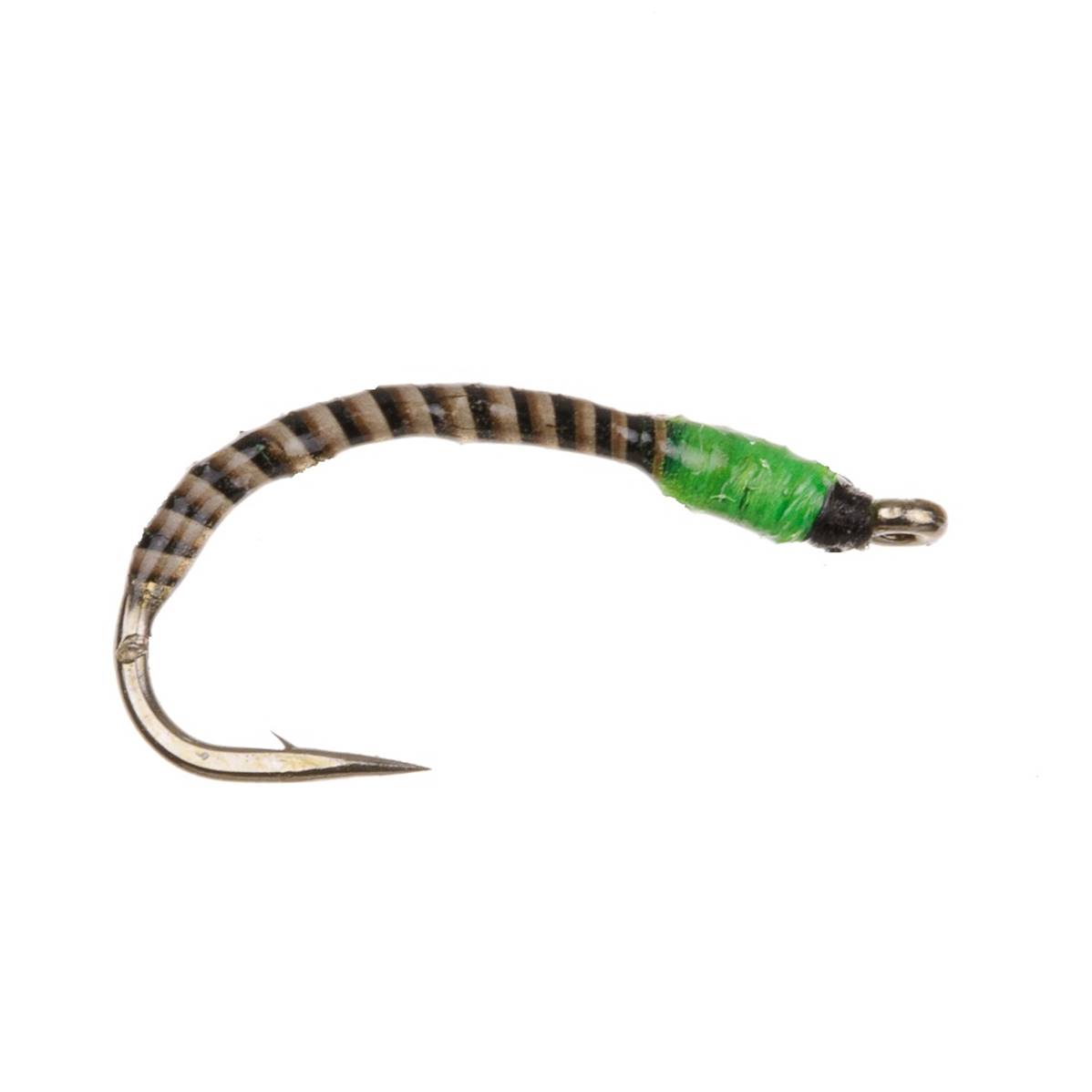 The Maggot Flu Green Neon Quill Buzzer is a fly designed to imitate the pupal stage of a midge, a crucial part of a trout's diet. As midges transition from larvae to adults, they rise through the water column, making them vulnerable and attractive to fish. This fly mimics the emerging midge pupa with its slender profile and vibrant green hue, which catches the attention of trout. Fish target these pupae because they are abundant and provide a rich source of nutrients. The fly's design effectively replicates the natural movement and appearance of the midge, enticing trout to strike.