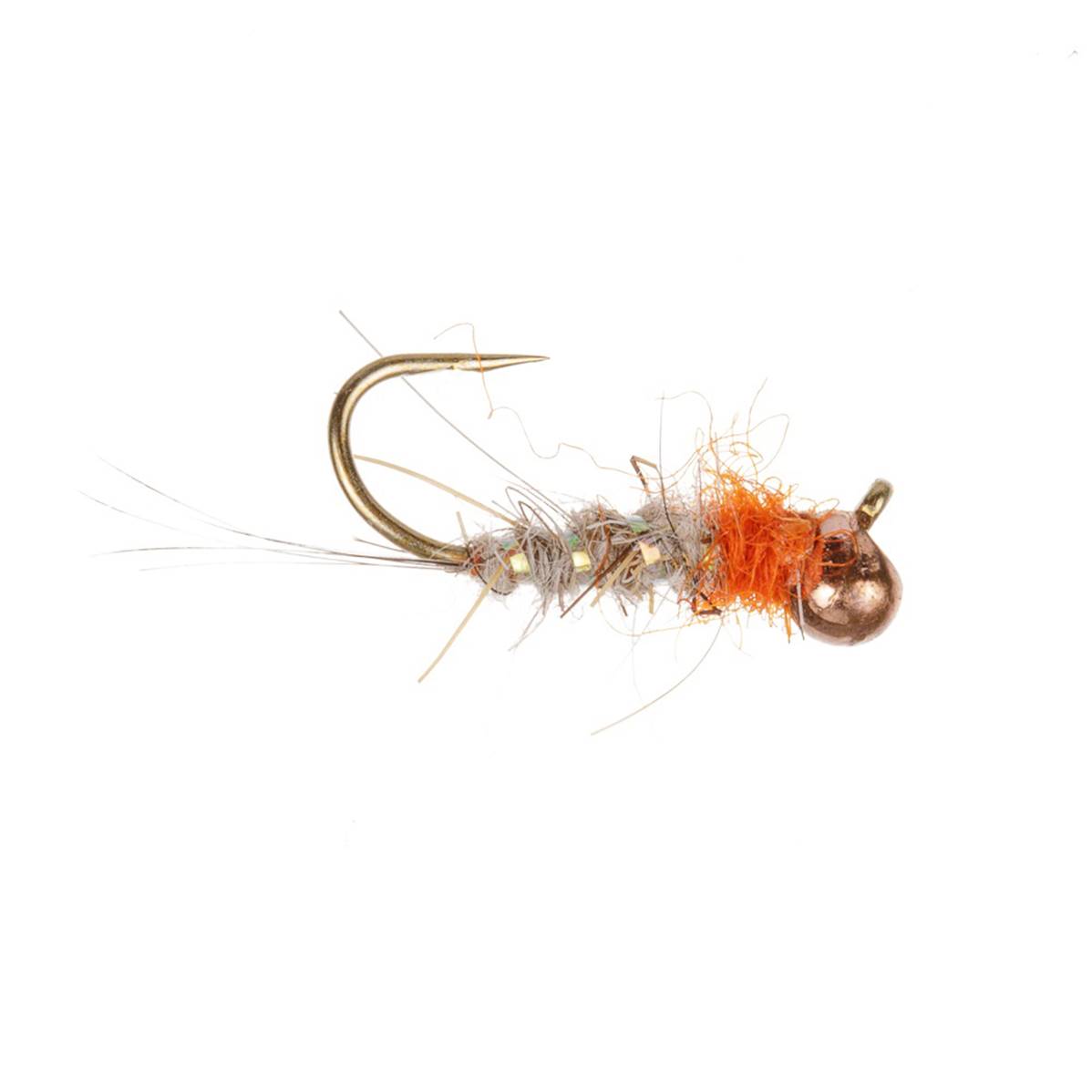 The Off Bead Copper Hares Ear & Orange Tungsten Nymph is a barbless trout fly that combines traditional craftsmanship with modern innovation. Originating from the classic Hare's Ear pattern, this fly is enhanced with an off-bead design and a vibrant orange tungsten bead, ensuring it sinks quickly and attracts attention. The hare's ear dubbing mimics natural insect textures, making it irresistible to trout. Perfect for clear waters, its barbless hook ensures easy catch and release, promoting sustainable fishing practices. Ideal for both novice and seasoned anglers, this fly is a must-have in any fly box..