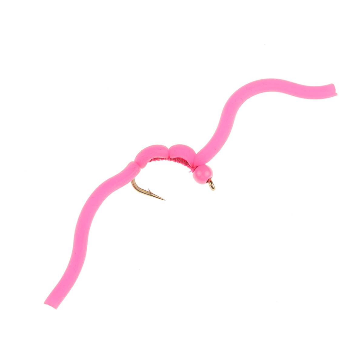 Key features include a soft, squirmy body that mimics natural worm movement, a beadhead for added weight and depth control, and a bright pink hue that stands out in murky waters. Known for its effectiveness in both still and running waters, this fly is a must-have for targeting trout in various conditions..