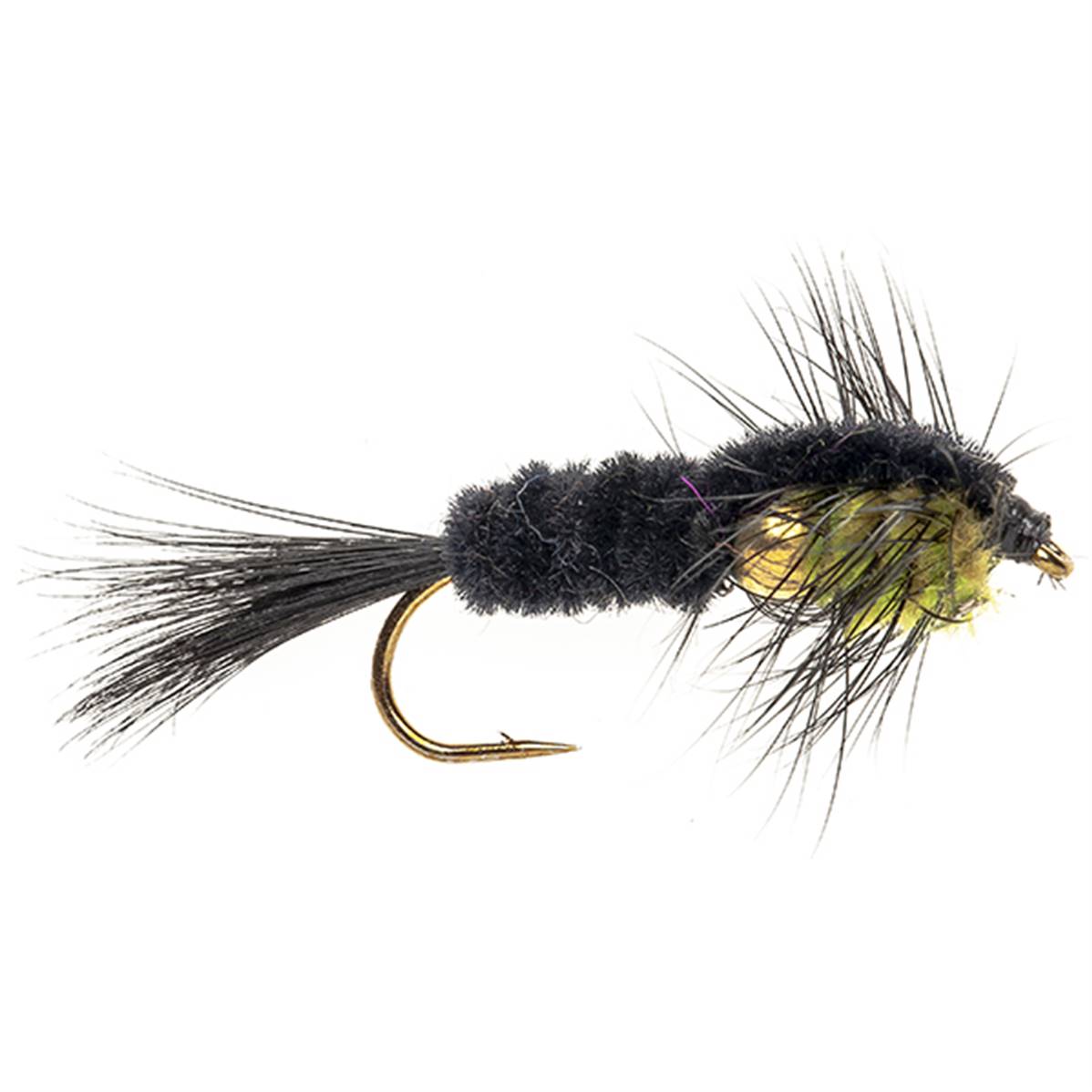 The Weighted Green Montana Trout Fishing Fly is designed to mimic the nymph stage of the stonefly, a crucial part of a trout's diet. Stoneflies are aquatic insects that spend most of their life cycle underwater as nymphs before emerging as adults. The fly's green and black coloration, along with its weighted body, imitates the natural appearance and movement of these nymphs as they drift along the riverbed.