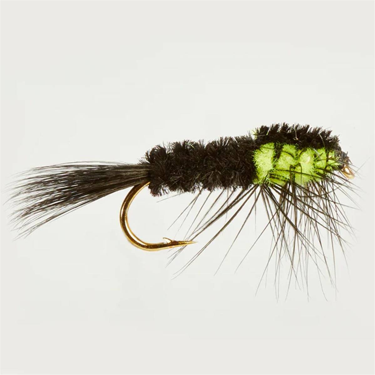 The Weighted Flu.Green Montana Trout Fishing Fly is designed to mimic the caddisfly pupa, a crucial stage in the life cycle of this aquatic insect. As caddisflies transition from larvae to adults, they become highly vulnerable, making them an irresistible target for trout. The fly's vibrant green hue and weighted design replicate the natural buoyancy and movement of the emerging caddisfly, which struggles to reach the water's surface. Trout are particularly drawn to this stage due to the abundance and ease of capturing these protein-rich morsels, ensuring a successful feeding opportunity.