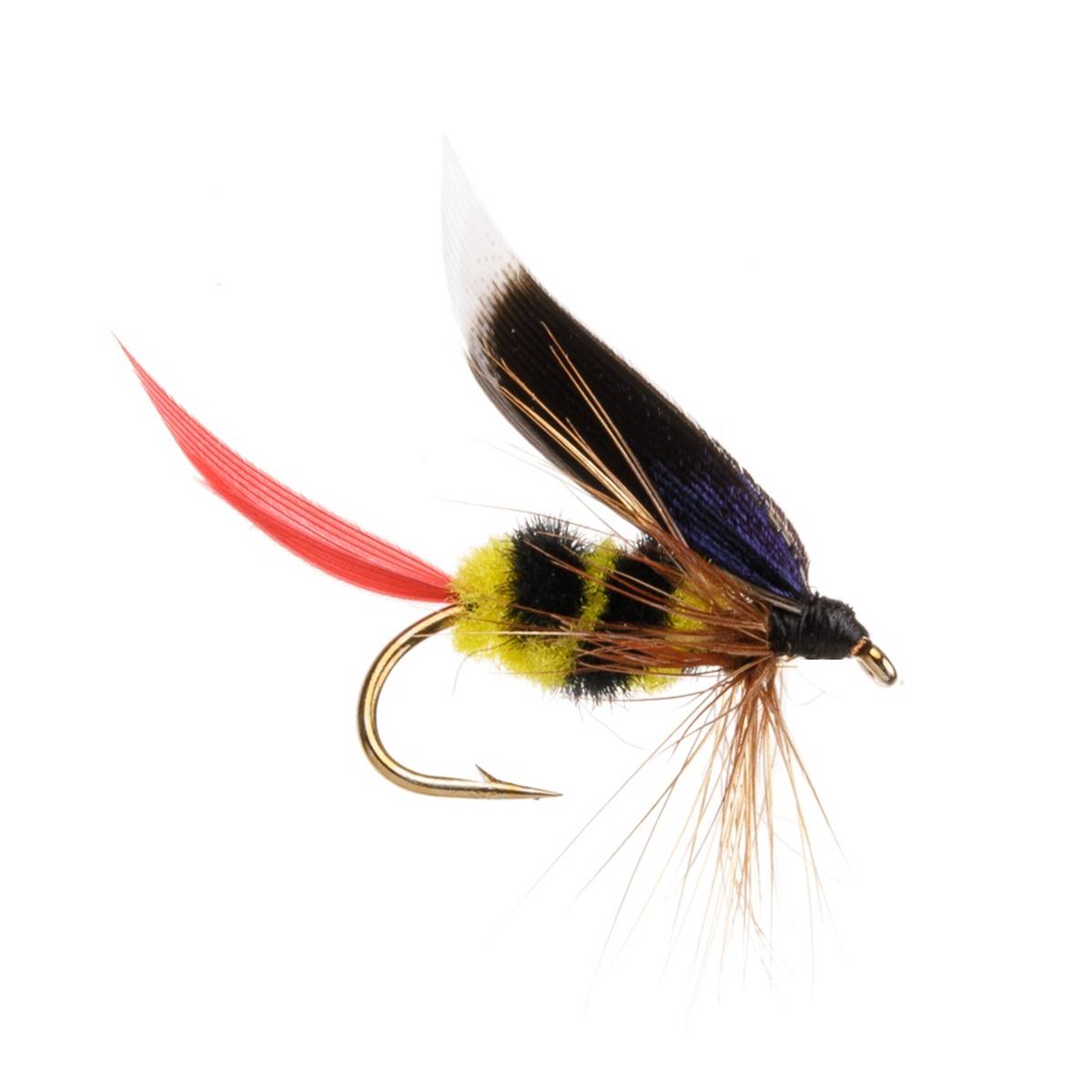 The McGinty Wet Winged Trout Fly, a classic in the angler's arsenal, is renowned for its distinctive yellow and black bumblebee pattern. Originating in the late 19th century, it was designed by Charles McGinty, an American angler, to mimic terrestrial insects that often fall into the water, enticing trout with its realistic appearance.