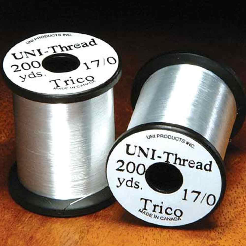 Uni Trico Thread 17/0 - Designed for tying on hooks size 20 down. Amazing strength to diameter. The Uni Trico Thread 17/0 is translucent white.